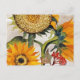 Orange Gul Sådd Solros Konst Vykort