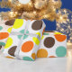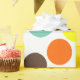 Denna papper har en geometrisk utformning av blå, orange, gult och bruna punkter.