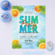 Orange & Handflatan Löv Party-platshållarplatta för sommartid i Klubb med bakgrund av oceanen i Vatten.