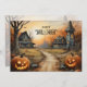 Orange Himmel, drabbat jordbrukshus Happy hallowee Julkort