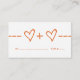 Cute and whimsical Heart Ekvation Bröllop Placera kort i orange med en roligt math-ekvation som "går med" två hjärtan/människor. Den här fina designen är ett charmerande val för ett paret eller ett par som vill ha något enkelt, men med ett tips om stollig. Det finns utrymme på den här produkten för skriva i namn och bordsnummer där var och en av dina gäster kommer att sitta på mottagningen. Klicka på knappen "Anpassa" för att hitta fler anpassningsalternativ.