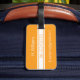 En bagagemärke i färg orangen med ditt monogram på en vit ovalsköld med ett band. Av säkerhetsskäl får du aldrig lägga fullt adress på en bagageetikett. Det är därför du bara hittar ditt namn, mobilt nummer och e-post adress på baksidan av ställe.