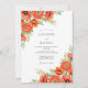 This vibrant design features bright orange poppies and delicate ranunculus blooms in a watercolor style. Lush green foliage adds a fresh, natural element against the crisp white backdrop. Perfect for a warm-weather event, the palette evokes a cheerful and sunny atmosphere for a romantic occasion.