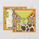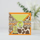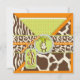 Safari skriver ut, giraffe, zebra och cheetah och en polka dot mönster, med apa hängande på en vindruv och 3D-märkre, box, trims födelsedagsinbjudan för en treåring.