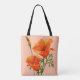 Fina blommor i orangen som gör ett lika vackert allt. Observera att dopporna visas på båda sidor om påsen, i spegel-bilden. Observera också att min butik har många fler tote bags med vackra blommigtar. Vill du se mer gammal? Min blogg: www.fullservicebohemian.blogspot.com