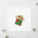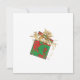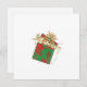 Orange tabby katt poppar ut från en julklapp med helgdag täckt med rött och grönt kattunge skrapade pappert, guld band och båge. Art av Margaret Loftin Whiting.