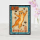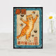 Orange katt hoppar med sushi japansk mat män kvinn kort