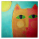 Min färgrika abstrakta digitala målning av en orange katt med gröna ögon tryckt på keramisk platta
