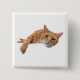Porträtt i en orange tabby katt domestic-kortslutning som ligger på en vit bakgrund med tass nedbrutet över bord