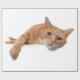 Porträtt i en orange tabby katt domestic-kortslutning som ligger på en vit bakgrund med tass nedbrutet över bord