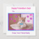 Denna förtjusande Alla hjärtans dag-kort visar en söt orange kattunge med en charmig slips, som sitter stolt i mitten av designen. Kattungen är omgiven av handritade rosa hjärtan och stjärnor som ger en lekfull touch. De livfulla färgerna och funky doodles gör detta kort iögonfallande och fullt av personlighet.