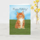 Gullig förtjusande orange kattungekärlekblått synar födelsedagkortet