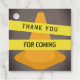 Ett födelsedagstema med en illustration av en orange kon med gult och försiktighet: "Tack för att du kom" Anpassa namn och datum på motsatt sida.