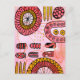 En livfull abstrakt organisk konst med varma orange, korall- och rosa nyanser med djärva svarta konturer och lekfulla mönster.