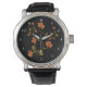 Orange Lillies Blommönster Black Wrist Watch Armbandsur