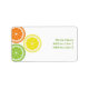 Färsk och roligt etikett i vit, gult, grönt och orange.