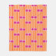 Denna medelmåttiga filt har en modernt utformning av orange lodrät linjer med rosa, där rektanglar över ytan upprepas.