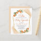 Den här citrusfrun som kallas baby sprinkle har en guld-geometrisk ram som är försedd med vattenfärgsfärgade orangar. Anpassadet finns i handskriftsskript för modern orange och svart sans serif. Anpassa den med namn i mamma och duschdetaljer. Kortets baksida är en pastellskugga med orange som matchar vattenfärgens högdagrar på framsidan. Idealisk för en sommarbabydusch!