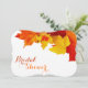 Fall inbjudningskort för möhippa. Vita kort med rött och orange, verklig löv på båda sidor. Realistiskt höst löv, fotograferat i New England och isolerat för att skapa ett unikt bröllop-kontor.