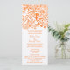 Orange Love birds bröllopsinbjudan. Hindu Mehndi Indian Henna inspirerade bröllop eller Lacey Whimsical Folksy Lovebird Folk Art Inspired med Monogram Coral Orange Paisley Mönster