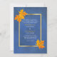 Orange maple löv på blå nedfläckad pappra bröllop inbjudningar