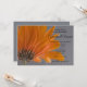 Den vackra Orange Margerita Bröllopsinbjudan kan anpassas med namnen på bruden och brudgummen samt detaljer om vigsel och mottagning för att inbjuda gäster till er kommande vigsel. Denna eleganta anpassade botaniska bröllopsinbjudan har ett blomfotografi av en orange gerbermargerita blomma på stjälken med en grå bakgrund.