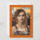 Elegant math graduation photo announcement with a orange and white math formulas and equations patterned background. Illustrated and designed by Patricia Alvarez.
