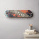 Skateboard-utformning i orange med grafiskt inslag, inskrivning i centrala delar och klätterverk.