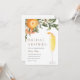 Inbjudningskort för möhippan med en vattenfärgad bukett av orangar och grönt med en orange champagne mimosa. Anpassa med din information eller klicka på "Klicka för att anpassa ytterligare" för att redigera teckensnittet stilar, storlekt och färg.