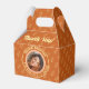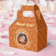 Elevate your graduation celebration with elegant orange photo favor boxes in warm orange, soft peach, and cream tones. The design features your graduate's photo in a sophisticated arched frame with their name, school, and class year, surrounded by a repeating graduation cap pattern. Thoughtful details create an elevated guest experience and memorable takeaway.