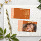 Share your contact details with style using this elegant photo graduation name card in warm orange, soft peach, and cream tones. The design features your graduate's photo, name, phone, email, social media handles, and website—perfect for networking at graduation celebrations or professional events. Includes a classic graduation cap graphic for a polished finishing touch.