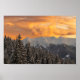 Orange moln ovanför berg- och källskogar poster