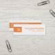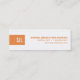 Här är en modern take på en monogram på en lämplig smala-format visitkort. En orange rand kantjusteras av på vänster sida för att innehålla en monogram. Skrivar känd och huvudsaklig om kontakt information ut om en affär till höger. De omvända visningarna ett namn, en titel och en information om kontakt som knackas ut ur den orange panelen. En contemporary söker efter någon i det idérika fält, marknadsföring, kommunikationer, advertizing eller en konsulent. Tillgängligt i omväxlande färger med att matcha produkter.