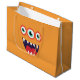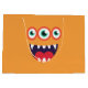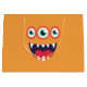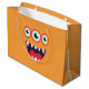 Ett orange monster ansikte med tre gröntar ögon och ett toart leende. Cute-väska för vilken party som helst!