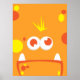 Cute and roligt Orange Monster Kawaii Ansikte Poster Print. Underbara för barn och vuxnor.