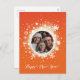 Det här är en orange i firande-vagn med anpassadet "gott nytt år meddelande" och foto. Snöflingor har spritt sig runt hål, där du ställen ditt eget foto.