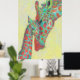 En tillgiven motehr och baby giraffe i vita nyanser av orange, gult och akvarier. Denna tryckning finns även i andra färg.