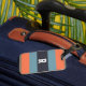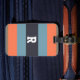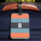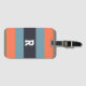 Modern orange och blå, stripe bagagetagg. Anpassa märkrn med ditt namn eller första namn. Teckensnittet stil och färg kan anpassas till ditt eget stil.