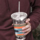 Modern orange och blå rand mönster med "Pappa" skrivet med vitt blockteckensnitt. Teckensnittsmeddelandet stil och färg kan anpassas till ditt eget stil.