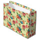 Coola, blåpumpor och orange med löv av grönt i ett prov mönster mot bakgrund av ljusa gulter.
