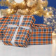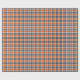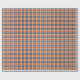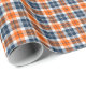 Omslagning papper med en originalplaidwerx sportiskt pläterad mönster i klar orange, blå och vit, med ljusblå och grått högdagrar.