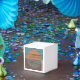 Modern design i skuggor av orange, grönt, teal, blått och brunt.