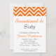 En underbarare födelsedagsinbjudan till ett dam. Den har en orange och vit schevron mönster högst upp på inbjudan. Du anpassar party-informationen på framsidan i svartvitt och orange.