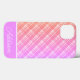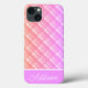 Iphone case har en orange- och lila övertoning i mönster med tjockt lila rand och tunt vitt rand med anpassade namn.