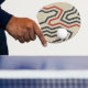 Grafisk orange och blått linjer går genom Chariklia Zarris i biet. Orangen går igenom större delen av arbetet, medan de blues linjer har en märkbar mönster till sig. Skaffa dina egna idag!