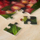 Det här vackra pusslet har en visning av frön av rödgranat, orange och grönt mynta löv.