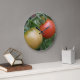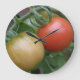 Den här fantastisk-klockan har ett foto av en orange och en röd körsbärstomat som odlas på en tomatanläggning i en förortsträdgård. Fotografiet togs med makrofotografi för ett detaljerat resultat.