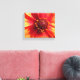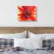 Stängning av en dahlia blomma med rött och orange. Floral-fotografi som togs sommaren 2014 i Corralitos, Kalifornien.