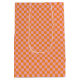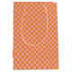 Bärbar och lekfull kontrollerad orange och rosa presentsäck. Perfekt för att lägga till ett popo av färg till tillfälle, oavsett om det är en födelsedag, årsdag, Halloween eller bara för att.