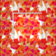 Tyg i ett modernt Mitt--Århundrade, Kandinsky-inspirerad abstrakt sammansättning skuggar in av orangen, persika och shock rosa